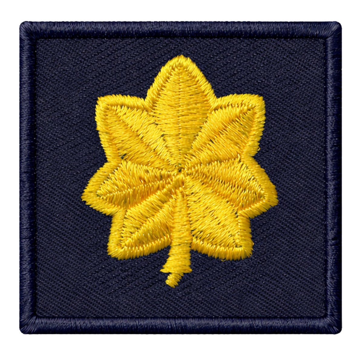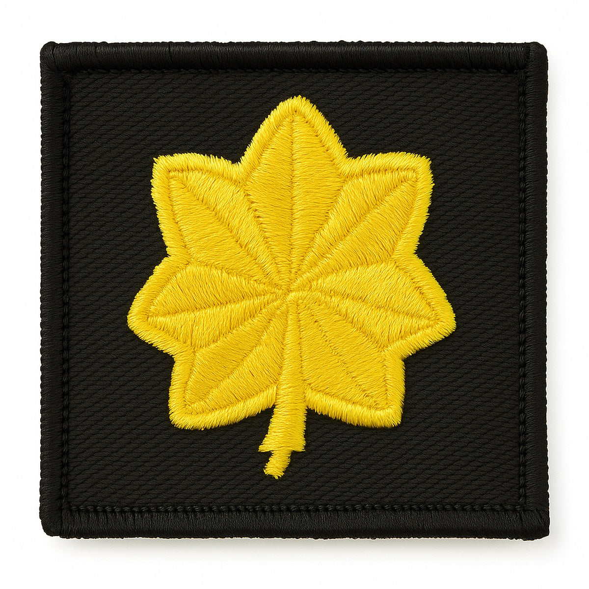 Major Embroidered Rank Medium Gold on Black, 1½" x 1½" (Pair) Professional major insignia patches featuring a detailed gold oak leaf centered on a black field for crisp, high-contrast identification. Dense full embroidery preserves edge definition and color fidelity through daily wear and routine laundering. Sew-on backing delivers a clean, tailored installation on duty uniforms.