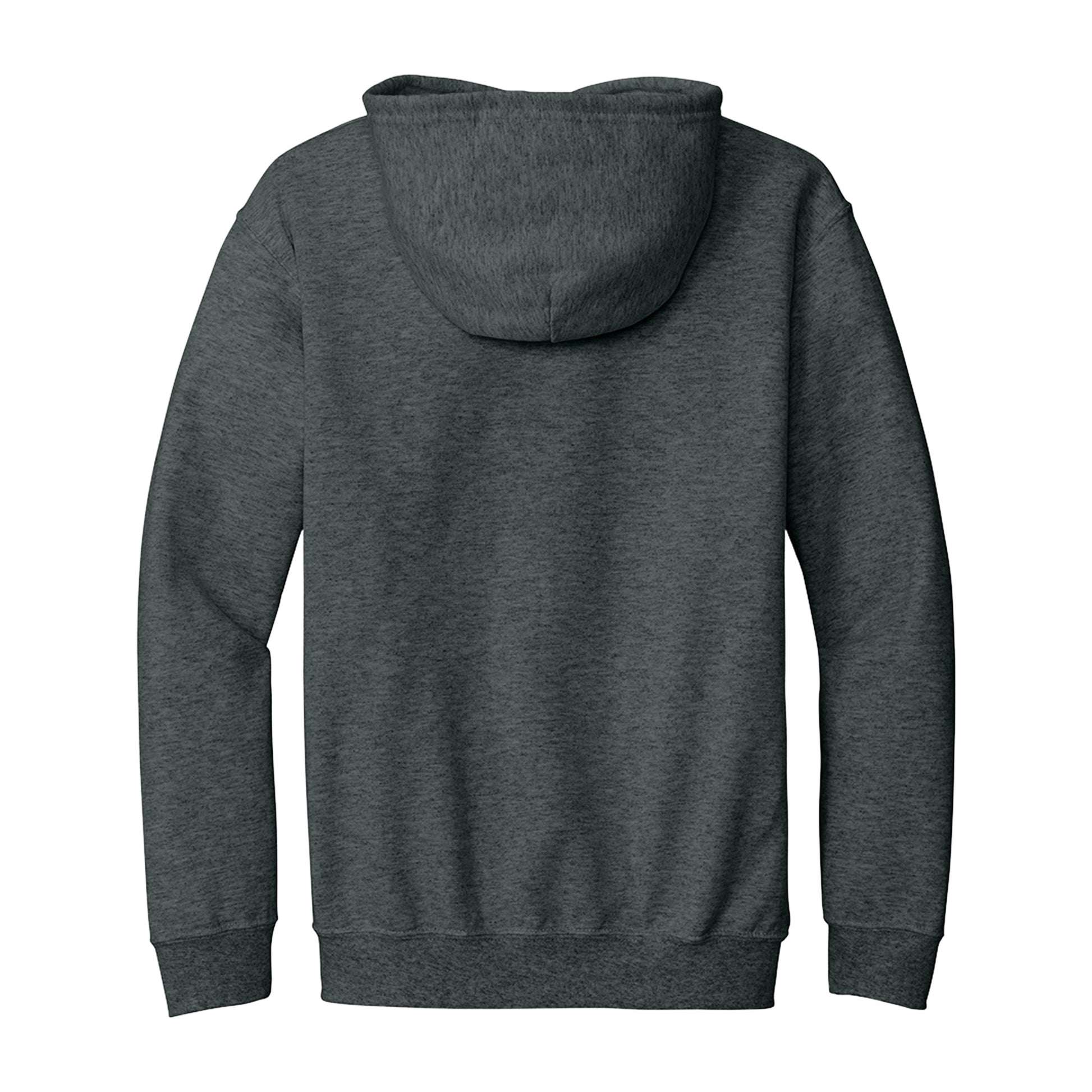 Essential Full-Zip Fleece Hoodie A dependable everyday layer with the comfort of midweight fleece and the convenience of a full-length metal zipper. The classic silhouette features an unlined hood with matching drawcord, sturdy rib-knit cuffs/waistband to hold its shape, and roomy front pouch pockets for quick storage. Made from a balanced cotton/poly blend for softness and durabilityand ready for decoration for teams, staff, or casual uniforms.