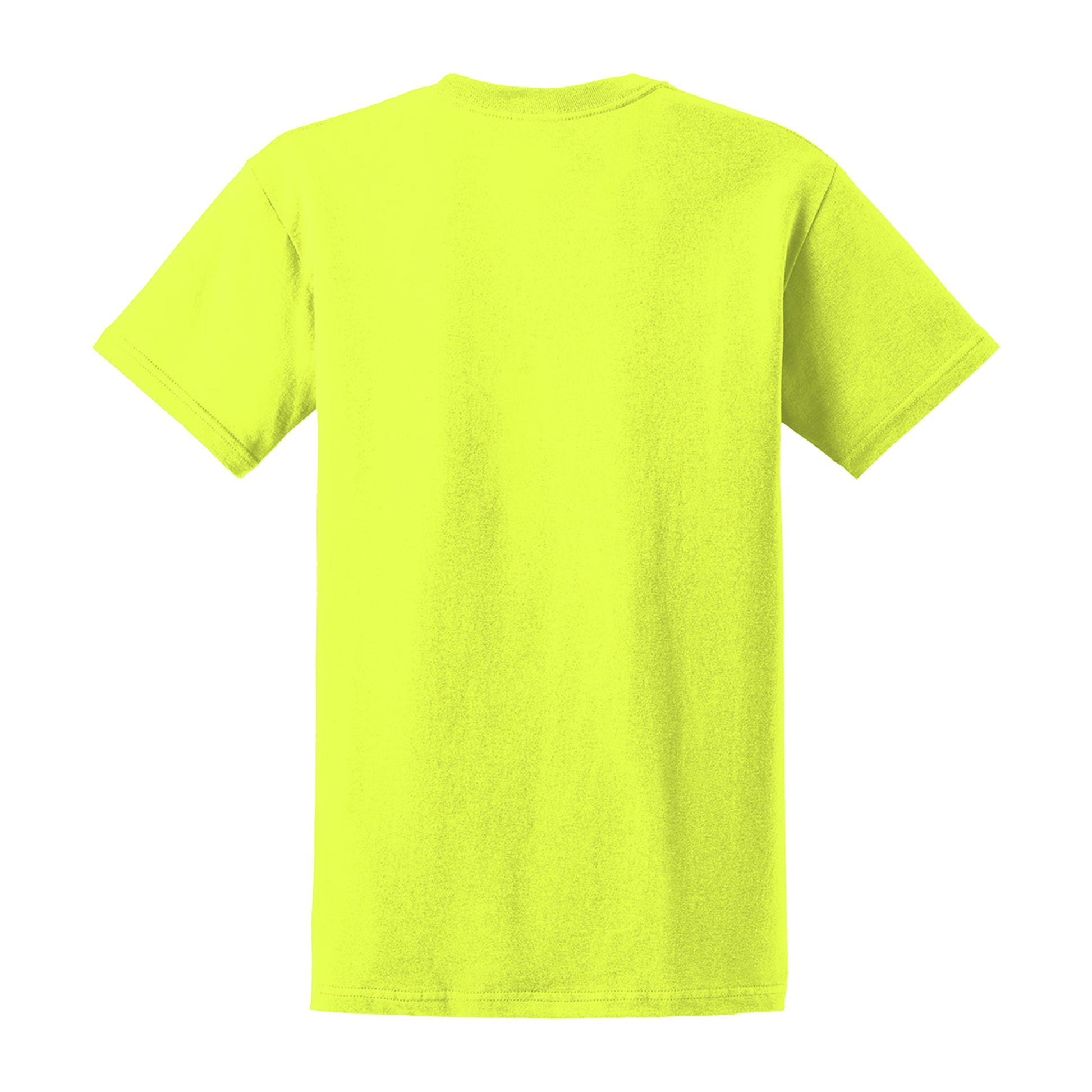 - 50/50 cotton/poly (Dark Heather, Safety Green, Safety Orange, Heather Navy)