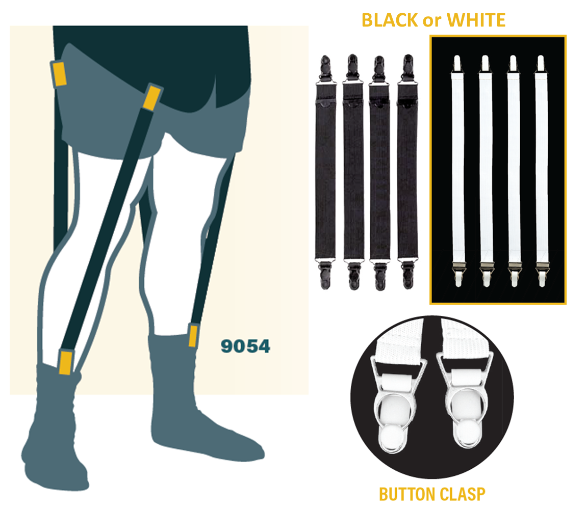 - Purpose: Maintains a clean, tucked shirt; helps keep socks from sagging
