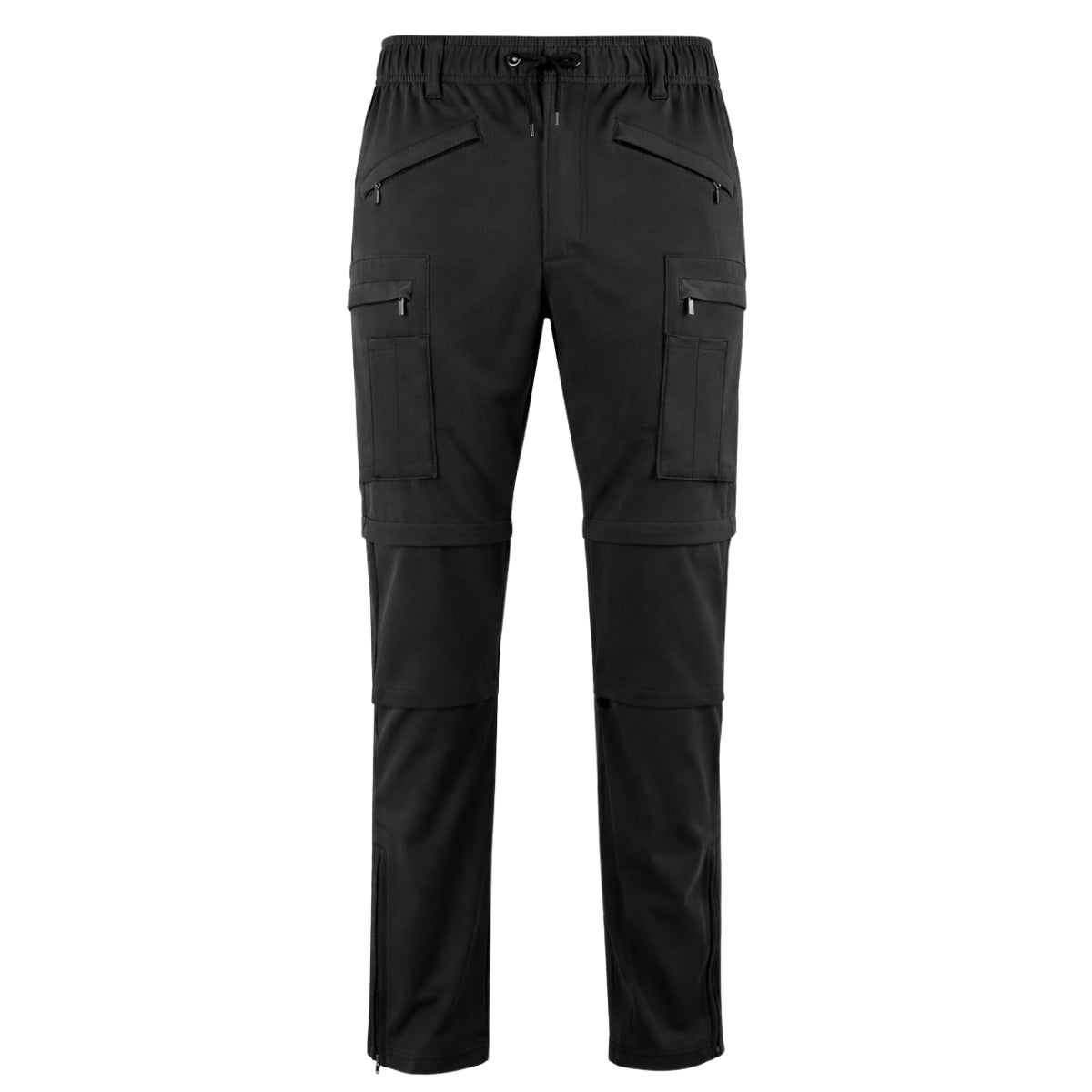 - Pockets (6 main): 2 front full-top zippered, 2 single-welt zippered hip, 2 side zippered cargo; plus pen pockets on each cargo